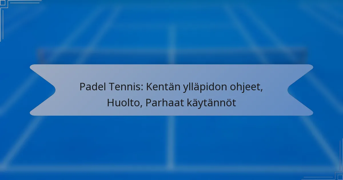 Padel-tenniskenttien ylläpito on olennaista optimaalisen pelattavuuden ja turvallisuuden varmistamiseksi. Tärkeitä ohjeita ovat säännöllinen pintapuhdistus, ajankohtaiset korjaukset, turvallisuustarkastukset, kausiluonteinen ylläpito ja oikeiden ylläpitovälineiden käyttö.