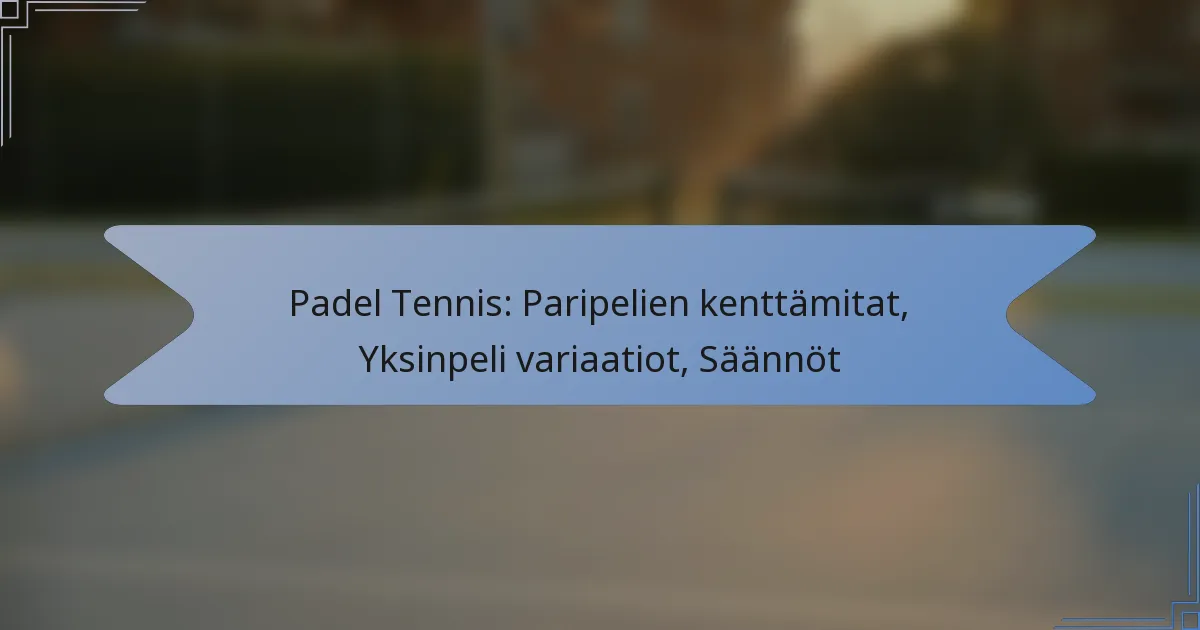 Yksinpeli variaatiot padel-tenniksessä eroavat ensisijaisesti kentän mitoissa, säännöissä ja strategioissa verrattuna kaksinpeliin. Näiden erojen ymmärtäminen voi parantaa pelisi laatua ja valmistautumista yksinpeleihin.