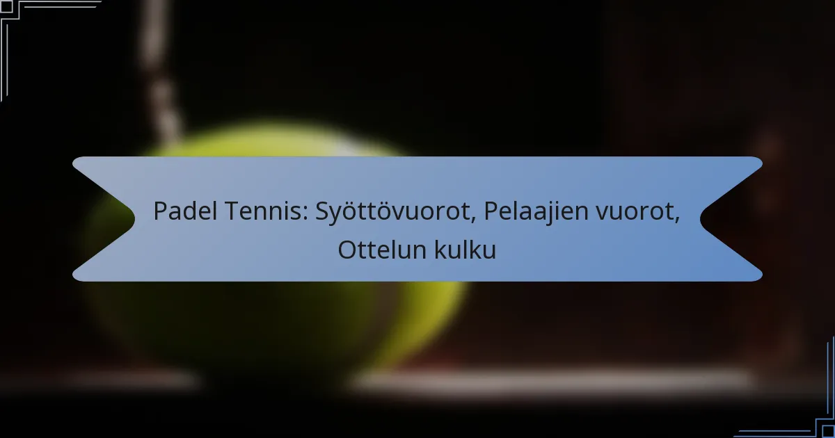 Padel-tennisissä on erityiset syöttövuorot, jotka määrittävät, miten pelaajat vuorottelevat syöttämisessä, mikä on tärkeää pelin sujuvuuden ylläpitämiseksi ja reilun pelin varmistamiseksi. Nelinpelissä pelaajat syöttävät ennalta määrätyssä järjestyksessä ja vaihtavat puolia säännöllisesti, mikä mahdollistaa strategisen pelin. Selkeä ymmärrys näistä mekanismeista parantaa koko ottelukokemusta ja auttaa pelaajia hallitsemaan aikaansa tehokkaasti.