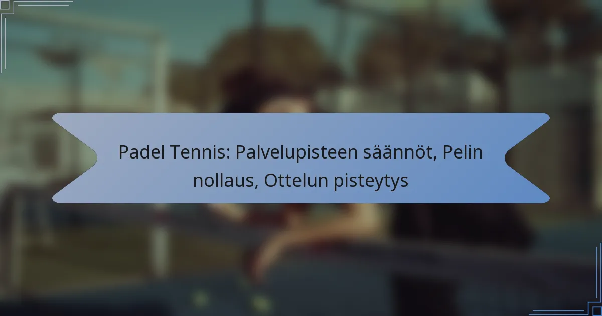 Padel-tenniksessä syöttöpisteen säännöt määrittävät, miten pelaajat aloittavat pelin ja saavat pisteitä. Syöttäjän on noudatettava tiettyjä tekniikoita ja sääntöjä varmistaakseen voimassa olevan syötön, mikä voi merkittävästi vaikuttaa pelin lopputulokseen.